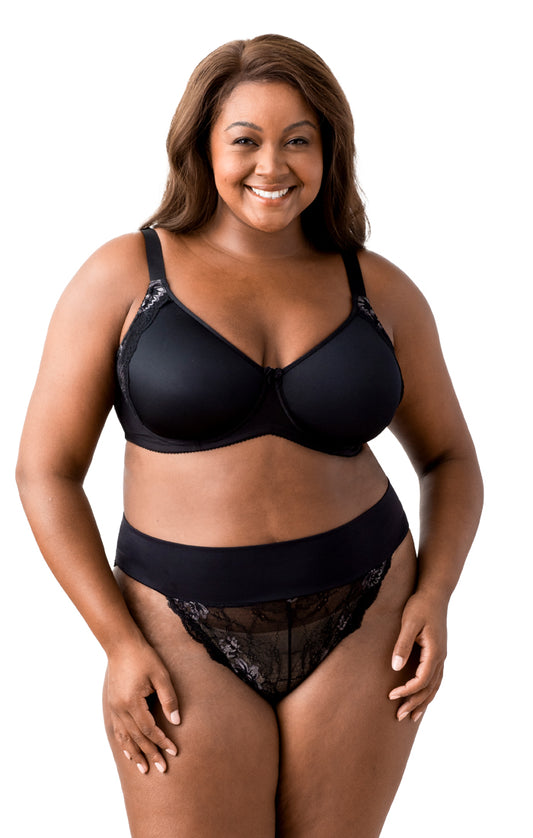 Elila Women’s Plus Size Lacey Curves Underwire Bra, Full Coverage Support, Style 2311 Black